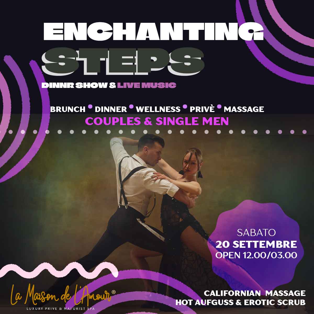 DINNER SHOW & DJ SET dalle ore 20.00. Durante l’aperitivo e la cena preparatevi a lasciarvi trasportare dalla magia della danza che vi incanterà, una serata elegante e coinvolgente dove la musica, la luce e il movimento si fondono in un’unica emozione. Sul palco, un uomo e una donna daranno vita a un’esibizione intensa e raffinata, attraversando diversi stili…dal tango passionale al moderno più audace, dalla grazie del contemporaneo al ritmo incalzante del latino. Ogni coreografia sarà un racconto, ogni passo un’emozione…Tutto accompagnato già dal pomeriggio dalle ore 15.00 da un DJ SET caratterizzato dalle ultime tracce del momento…